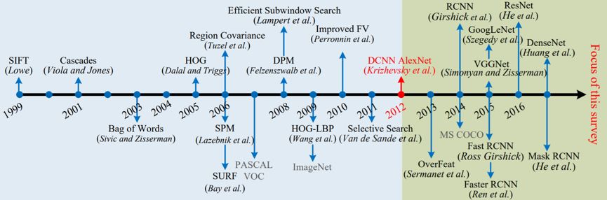 图 6:一般目标检测的里程碑,基于第一个 arXiv 版本的时间点