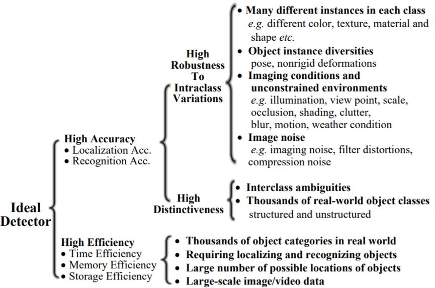 一般目标检测(即一般目标类别检测)也被称为目标类别检测 [240] 或目标分类检测,其定义如下。给定一张图像,确定其中是否存在多个预定义类别的任何目标实例;如果存在,就返回每个实例的空间位置和覆盖范围。