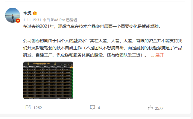 近日理想汽车创始人、董事长兼CEO李想在微博上发布了理想汽车2021年在智能驾驶方面做出的成绩。理想汽车在2021年NOA导航辅助驾驶激活和使用超过6万台,超过中国市场其他品牌导航辅助驾驶之和。其次,理想汽车在感知算法层面全面提高,OTA 3.0的理想ONE 2021款已经能识别高速路交通事故和道路施工现场了,提高了出行安全。还在懂车帝AEB(主动安全)测试中夺得了冠军,也是进入决赛中唯一有能力准确识别横向车辆和两轮车的车型。这些都表明在2021年中理想汽车在自动驾驶领域确实前进了很大一步,成为了全球第三家具备完整的NOA和AEB全栈自研能力的品牌,之前的是特斯拉和小鹏。