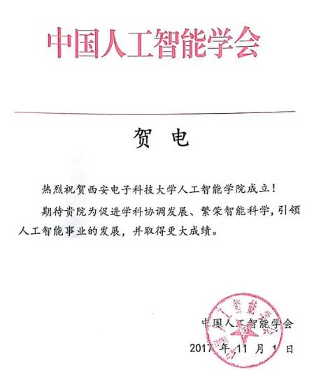 热烈祝贺西安电子科技大学人工智能学院成立!