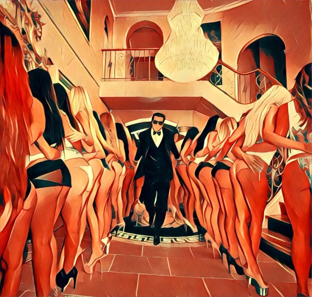 生活中都是香车、美女、大金链,骷髅Richard Mille在左腕: