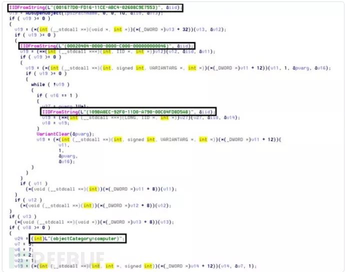然后,shareDll32模块使用WNetEnumResource和GetComputerNameW枚举和标识在同一域上连接的系统。