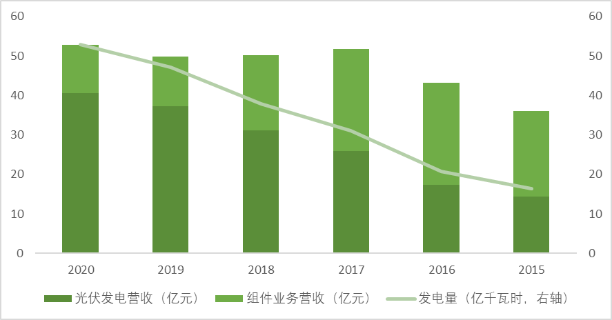 太阳能是中国节能环保集团旗下的子公司,2015年借壳上市,是一家老牌的集中式光伏电站运营企业,兼营部分光伏组件业务。2018-202H1,太阳能集中式光伏电站运营业务对应的营业收入分别为31.09、37.21、40.56和22.04亿元,呈现稳步增长的趋势。