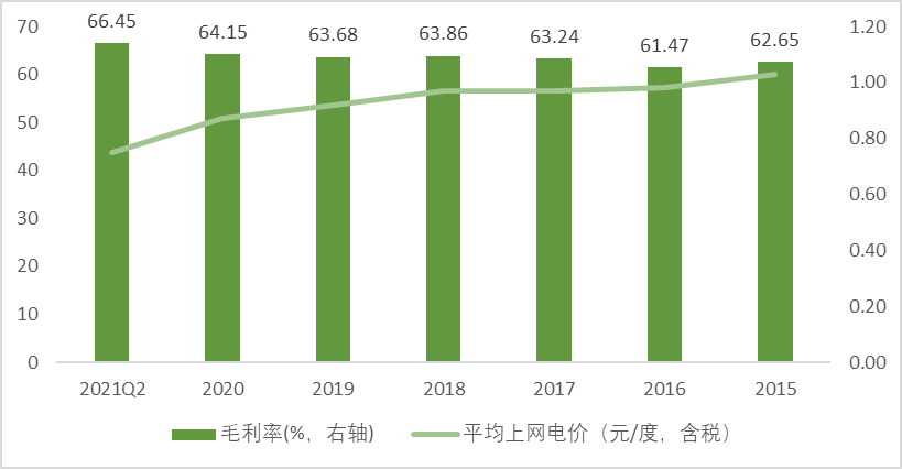 从太阳能自身的毛利率变动情况来看,尽管国家给予电站的光伏补贴从2011年起不断下降,但太阳能光伏电站业务的毛利率一直维持在60%以上的高水平,并未受到补贴退坡的影响,这不仅意味着光伏产业链上游完成了产品成本的同步下降,也表明太阳能拥有着优秀的成本管控能力。