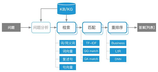 检索型单轮机器人(FQA-Bot)涉及到的技术和信息检索类似,流程图2所示。