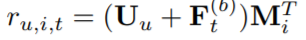 综合短期兴趣和长期兴趣,可得到用户对于某个物品的推荐分,推荐分越低,代表用户和物品越相近,用户越可能与该物品进行交互: