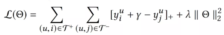 模型采用pair-wise的方法训练,即输入一个正例和一个负例,希望负例的得分至少比正例高γ,否则就发生损失,并在损失函数加入L2正则项: