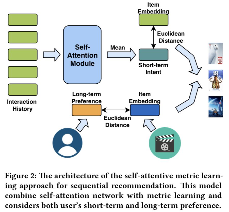 本文亮点是同时建模用户短期兴趣(由self-attention结构提取)和用户长期兴趣。