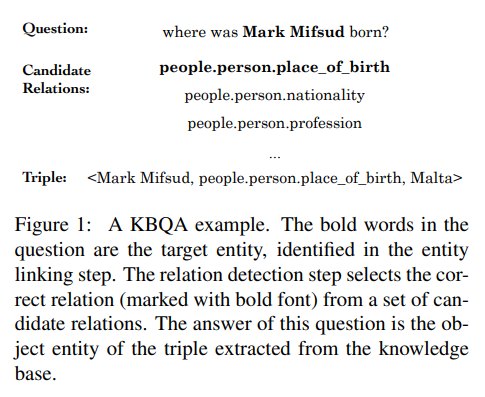 知识库问答可以通过结构化知识库,对自然语言问题进行准确回答。目前,知识库问答在搜索,对话领域都起着重要的作用。基于神经网络的知识库问答一般可以分为实体链接和关系检测两个子任务。实体链接可以从问句中得到表示问句主体的词语,关系检测可以从候选关系集合中选择正确表达问句语义的关系。本文主要关注于关系检测子任务。