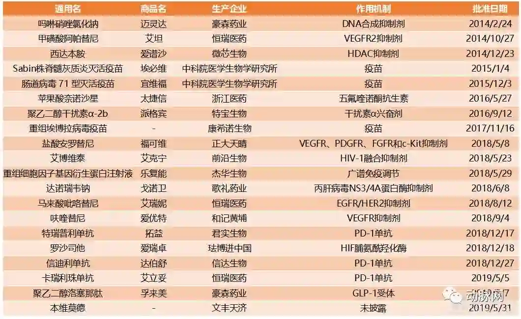 过去的五年是中国创新药蓬勃发展的五年,2018年药审中心批准了9个国产1类创新药,创历史新高。近年来批准的国产创新药中不乏代表性产品,如紧随世界步伐的三款国产PD-1单抗,中国首发全球新药罗沙司他,中国自主研发的First in Class药物本维莫德等。这些都是国内创新药企业不懈努力的关键成果。