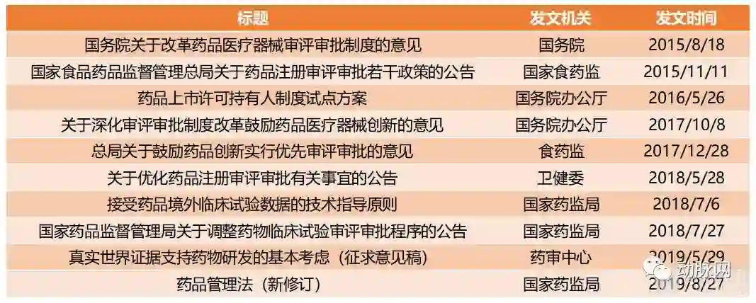 2015年8月,国务院印发的国发〔2015〕44号《关于改革药品医疗器械审评审批制度的意见》(以下简称44号文)正式拉开了国内创新药监管改革的大幕。44号文之后,厅字〔2017〕42号《关于深化审评审批制度改革鼓励药品医疗器械创新的意见》(以下简称42号文)再一次对44号文中提到的内容进行了强调,尤其突出了“促进药品创新和仿制药发展”、“改革临床试验管理”、“加快上市审评审批”、“加强药品医疗器械全生命周期管理”等几个要点。