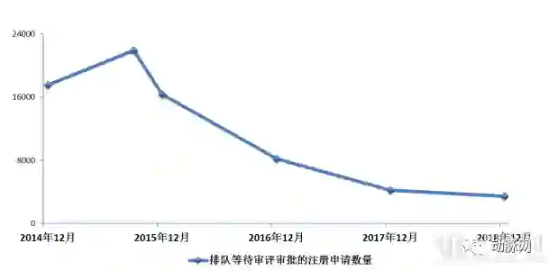 新政之下,药审中心开始加速消化此前积压的大量药品申请,到2017年12月,待审数量已经从22000锐减到4000件,初步完成了44号文中国务院提出的工作目标。