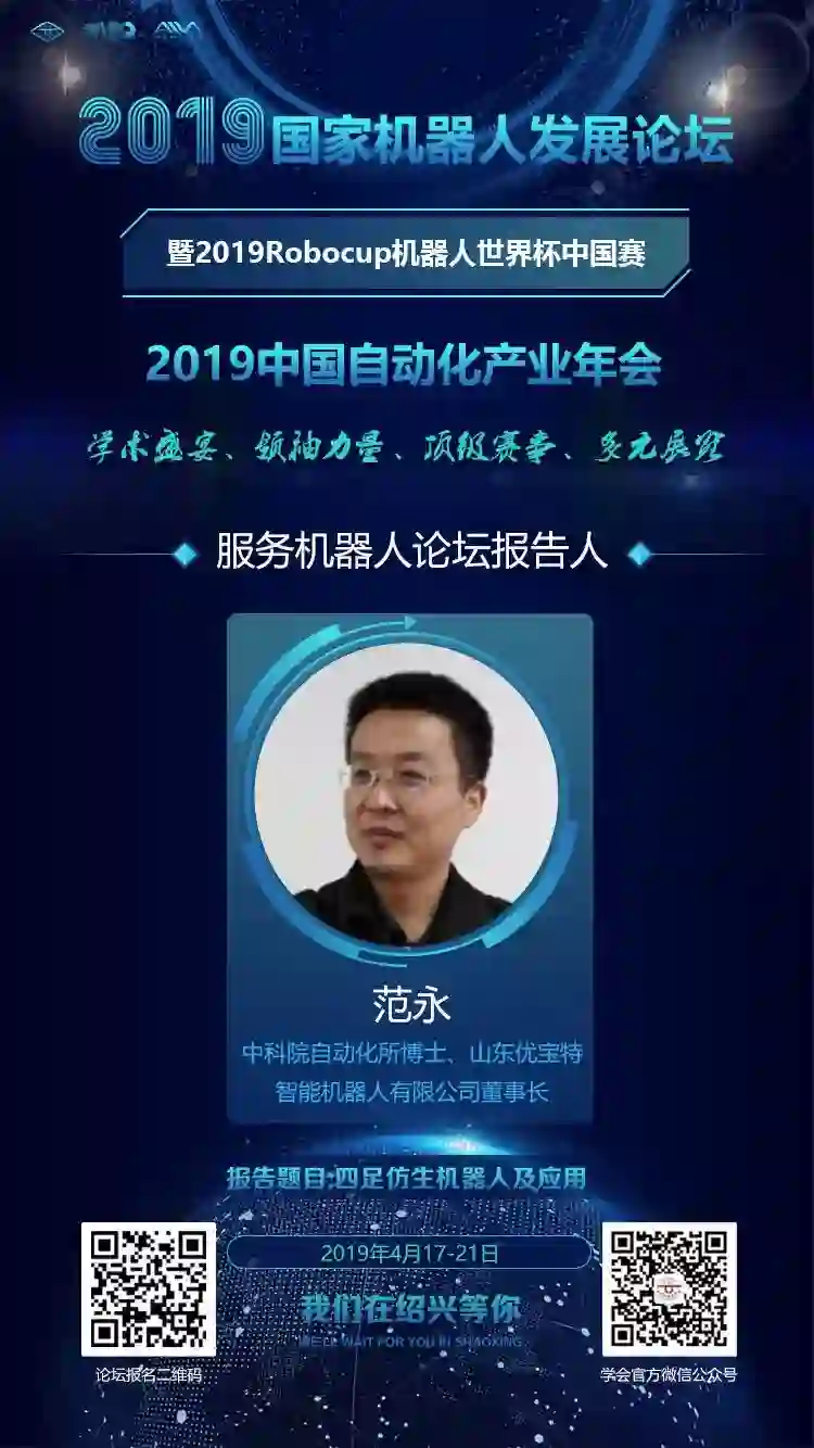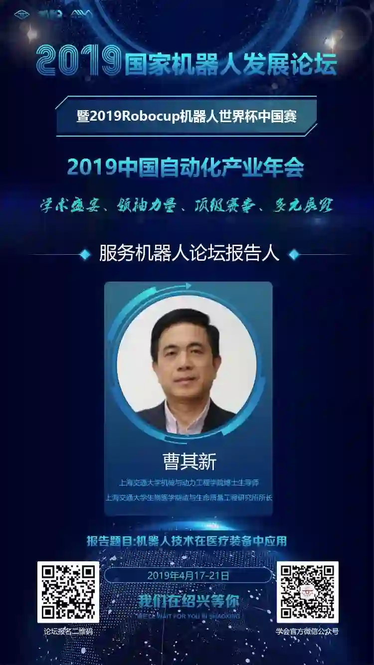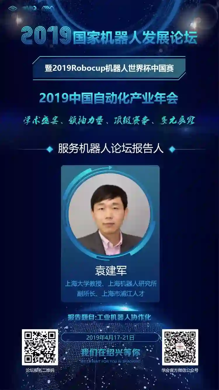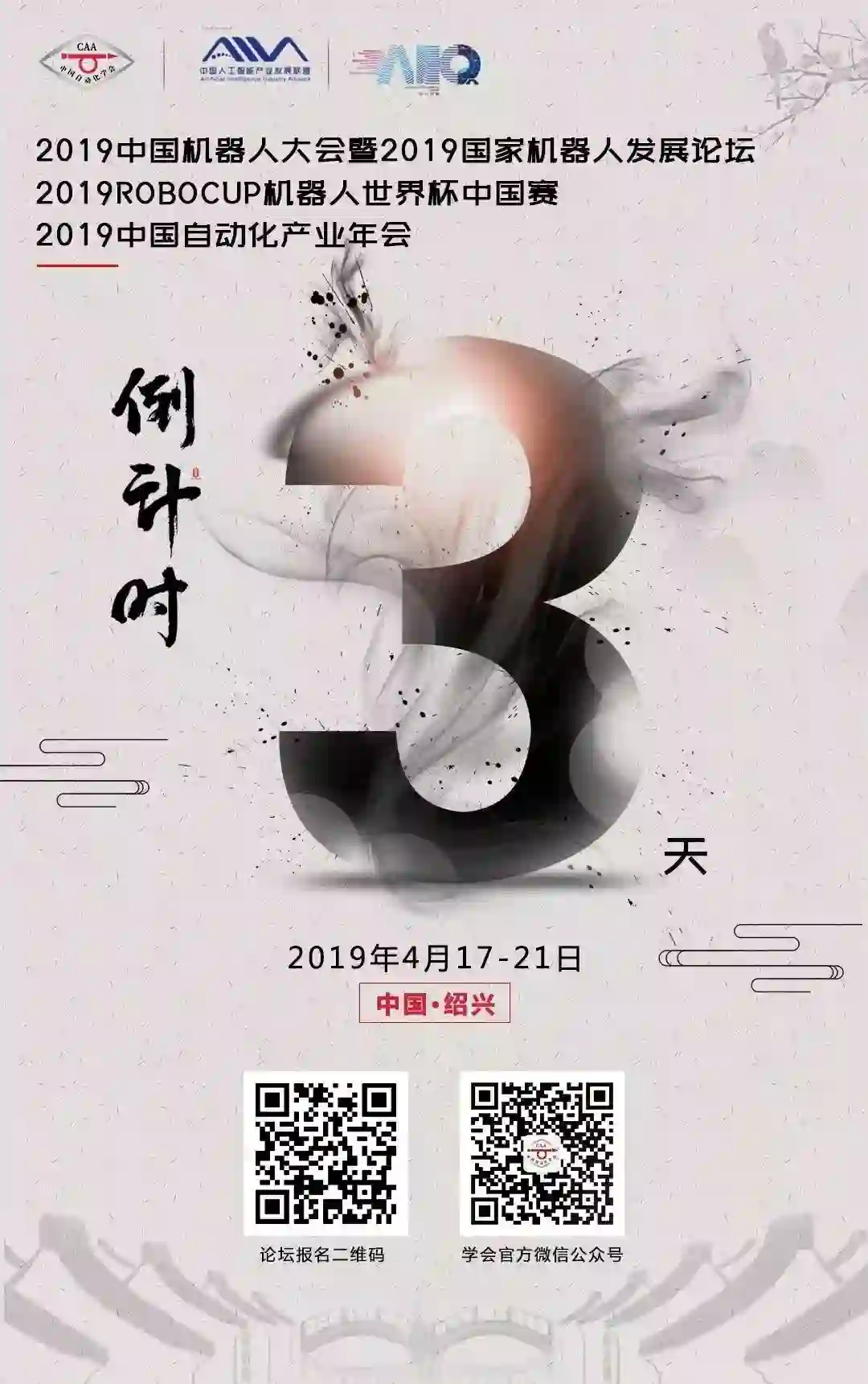 2019年国家机器人发展论坛将于2019年4月17-21日在浙江绍兴举办,敬请关注学会官方微信公众号和网站,了解最新论坛信息。