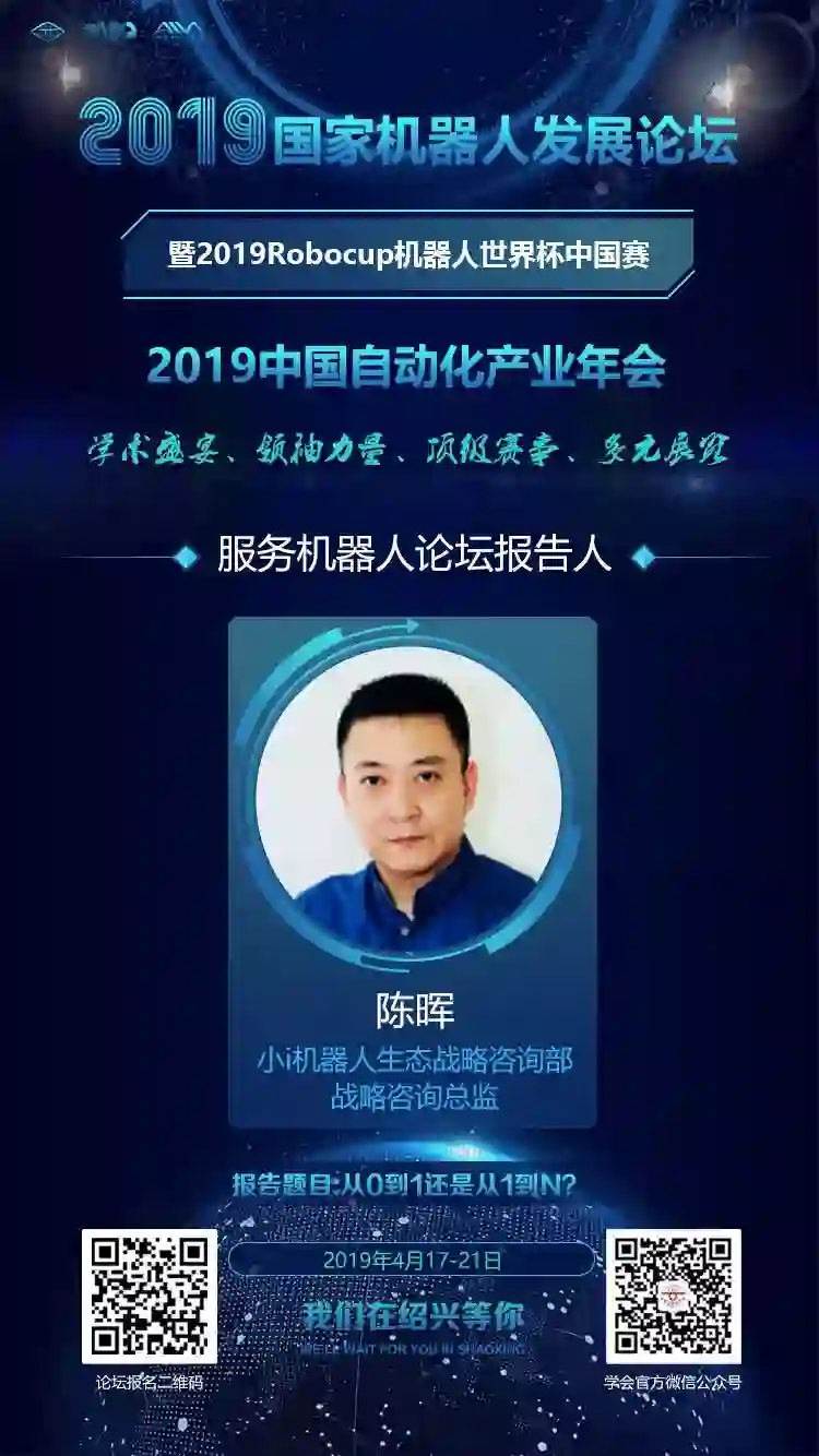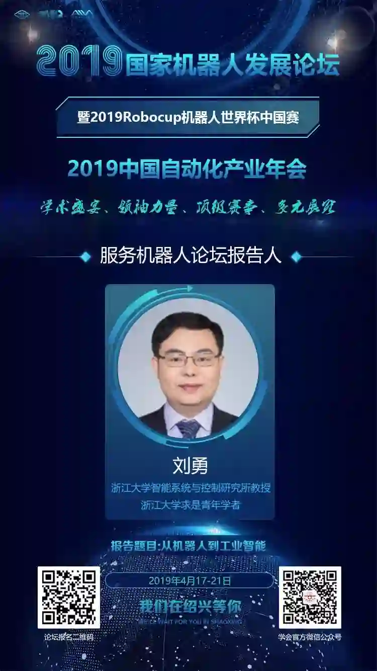 2019国家机器人发展论坛暨Robocup机器人世界杯中国赛以及2019年中国自动化产业年会将于2019年4月17-21日在绍兴组织召开,同期将开展科技成果展示,聚焦多种类智能机器人的发展,应用与创新,壮大中国机器人事业,为实现中国制造强国梦而作出贡献。此次活动由中国自动化学会、中共绍兴市委组织部、中共绍兴市柯桥区委、绍兴市柯桥区人民政府主办,中国人工智能产业发展联盟(AIIA)联合主办。