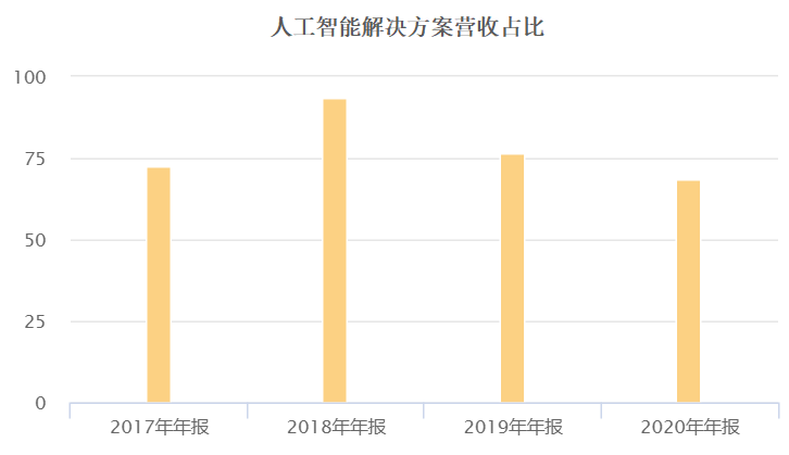 两大业务之中,人工智能解决方案不断下降,2018-2020年间的营收占比,由93.3%下降到68.2%;人机协同操作系统业务则整体处于稳中有升的局面,占比由6.4%上升到31.4%。
