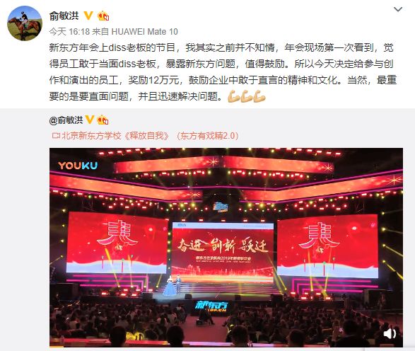 大BOSS俞敏洪在微博发布了节目视频