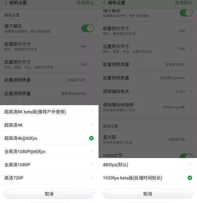 而除了这些平常的功能之外,努比亚还加入8K录像和1920fps慢动作的功能。你没有看错,就是8K录像。。。。