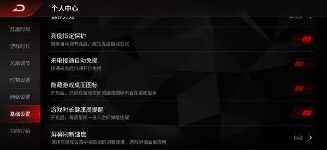 屏幕刷新速率和风扇档位也可自行选择。