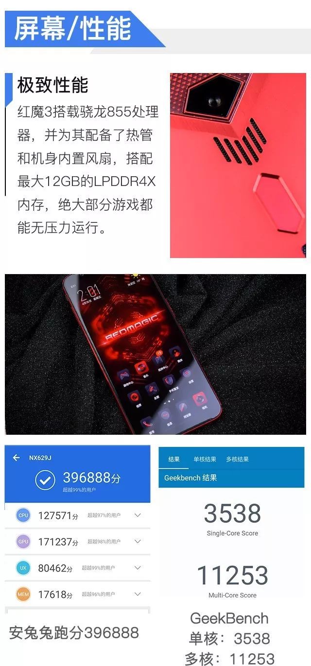 目前搭载骁龙855的手机又不少,但跑分能跑到红魔3这个成绩的确实不多,红魔超高跑分和强大的散热有直接关系。