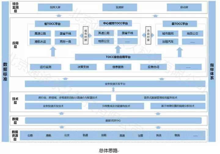 应用层:以行业管理和企业运营管理需求为基准,打造省、市、县三级TOCC综合应用平台,实现省市TOCC、市县TOCC的数据对接、应用对接。提升面向政府决策部门的科学决策能力,面向行业管理部门的管理协同能力,面向社会公众的公共服务能力。