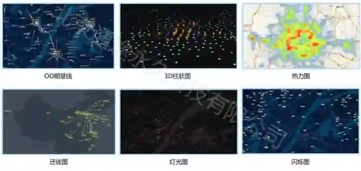 基于迁徙图、灯光图、热力图、散点图、OD期望线、闪烁图、运力图等,直观展示交通运行特性。