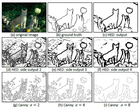 OpenCV中传统的图像边缘检测算法是Canny,现在OpenCV支持基于深度学习的边缘检测算法HED,它与Canny算法的边缘提取效果对比如下: