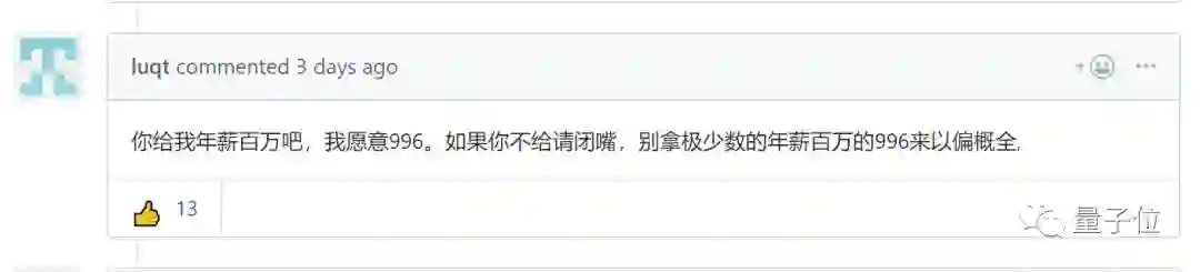 给我年薪百万吧,我愿意996。如果你不给请闭嘴,别拿极少数的年薪百万的996来以偏概全。