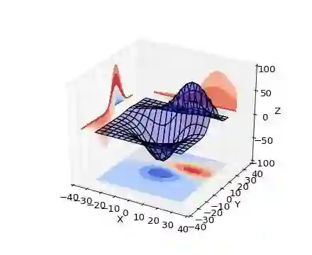 ax.plot_surface(X, Y, Z, rstride=8, cstride=8, alpha=0.3)cset = ax.contourf(X, Y, Z, zdir='z', offset=-100, cmap=cm.coolwarm)cset = ax.contourf(X, Y, Z, zdir='x', offset=-40, cmap=cm.coolwarm)cset = ax.contourf(X, Y, Z, zdir='y', offset=40, cmap=cm.coolwarm)