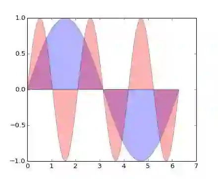 plt.fill(x, y1, 'b', x, y2, 'r', alpha=0.3)