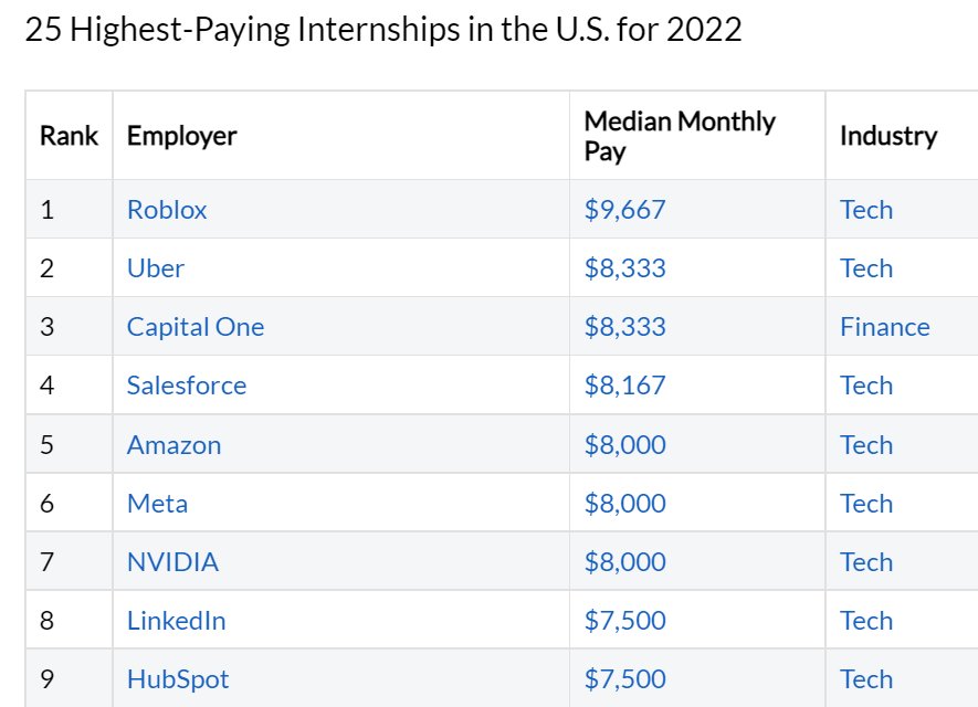 https://www.glassdoor.com/research/highest-paying-internships-2022/
