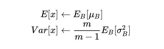 方差发生了改变, 推理 时,均值、方差是 基于所有批次 的期望计算所得,公式如下:
