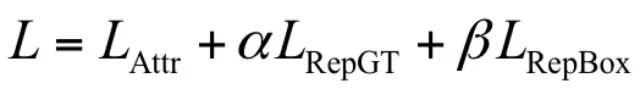 其中L_Attr 是吸引项,需要预测框靠近其指定目标;L_RepGT 和 L_RepBox 是排斥项,分别需要当前预测框远离周围其它的真实物体和该目标其它的预测框。系数充当权重以平衡辅助损失。