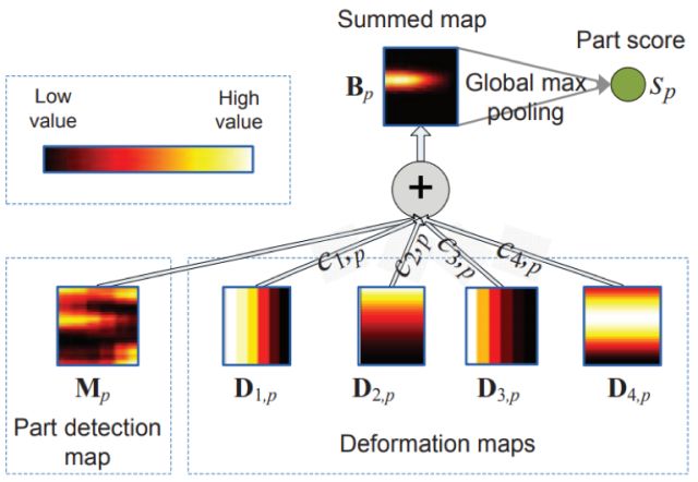DPM(Deformable Parts Models)算法在SIGAI在之前的文章“基于深度学习的目标检测算法综述”已经提到过。这是是一种基于组件的检测算法,DPM检测中使用的特征是HOG,针对目标物不同部位的组建进行独立建模。DPM中根模型和部分模型的作用,根模型(Root-Filter)主要是对物体潜在区域进行定位,获取可能存在物体的位置,但是是否真的存在我们期望的物体,还需要结合组件模型(Part-Filter)进行计算后进一步确认,DPM的算法流程如下: