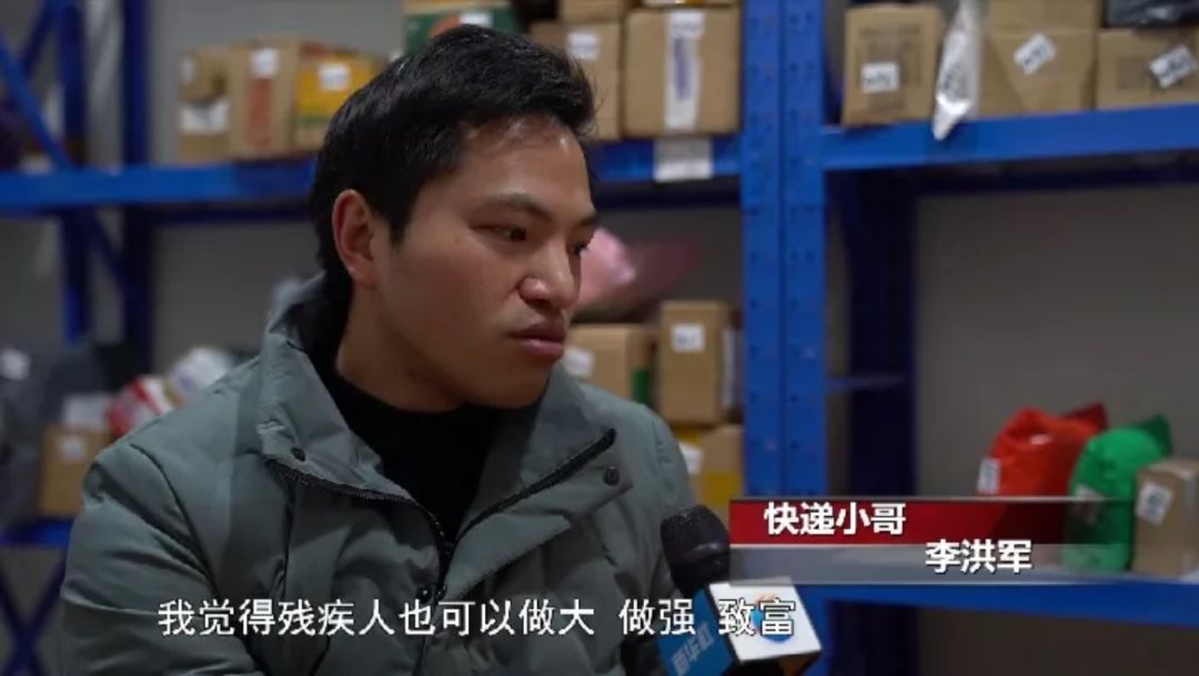 今年33岁的李洪军是成都市龙泉驿区人。17岁那年,工地上的一场意外让他失去了右腿。2011年李洪军开始在龙泉驿送快递。他深知,想要自力更生,必须比别人付出更多努力。他说:“残”了不是“废”了,残疾人也可以通过努力过上自己想要的生活。
