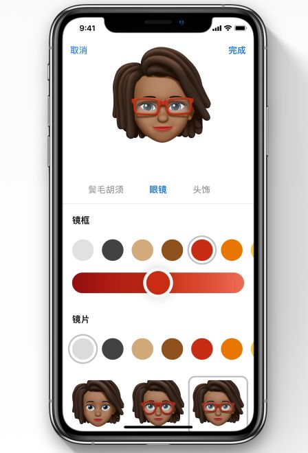 试试“拟我表情”吧。作为iOS 12的亮点之一,苹果在这款官配版表情制作器上下足了功夫。用户可以通过选择皮肤、发型、头型、眼睛、眉毛等特征来创建自己的卡通形象,一颦一笑、一举一动皆可还原。