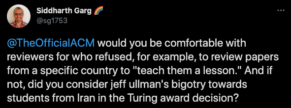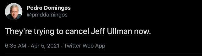 质疑者认为:「尽管 Jeff Ullman 在领域内的贡献是不可否认的,但我认为计算机科学家们还应该意识到他对这一社区造成的损害,尤其是在多样性、公平性和包容性方面。」
