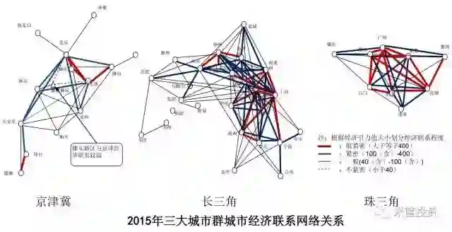 此外,在城市群的联系紧密程度上,京津冀也远远不及长三角和珠三角。