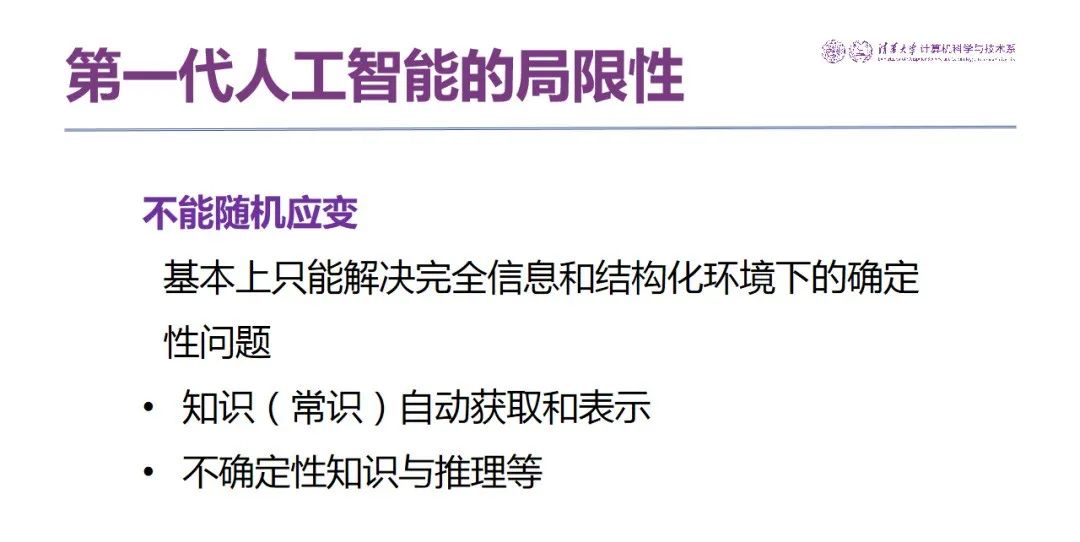 但是,第一代人工智能最主要的局限性,体现在它不能随机应变,即基本上只能解决完全信息和结构化环境下的确定性问题。比如下国际象棋就是一个完全信息的,并按照一定规律演化过程。