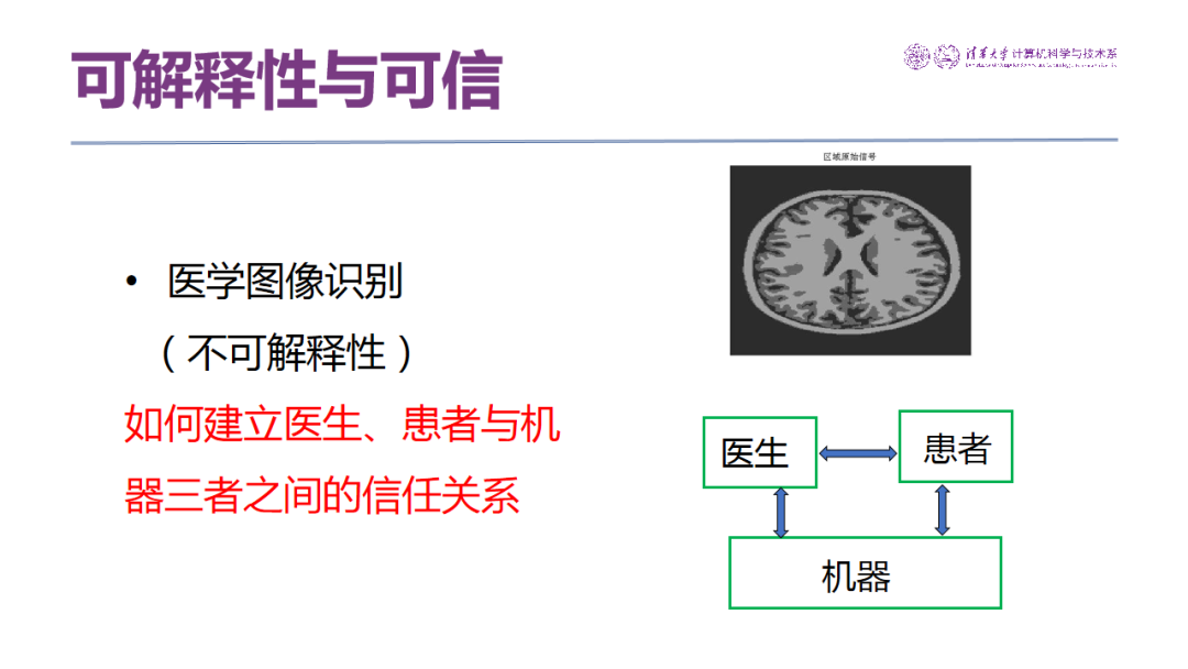 换句话讲,我们要想让这些人工智能技术在医学诊断中发挥更大的作用,就必须提高它的可信度、可靠性和可解释性等。