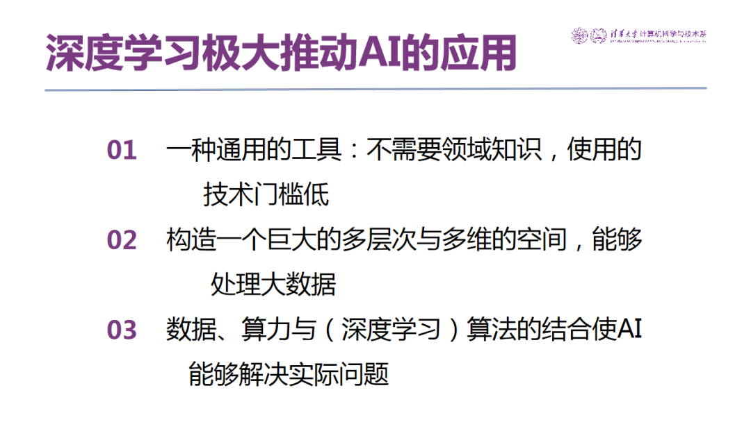 这说明在深度学习中,我们不需要图像相关的知识和语音知识,直接把图像和语音的原始信号输进去就可以,这就使得使用门槛降低,没有专业知识的人也可以使用深度学习。
