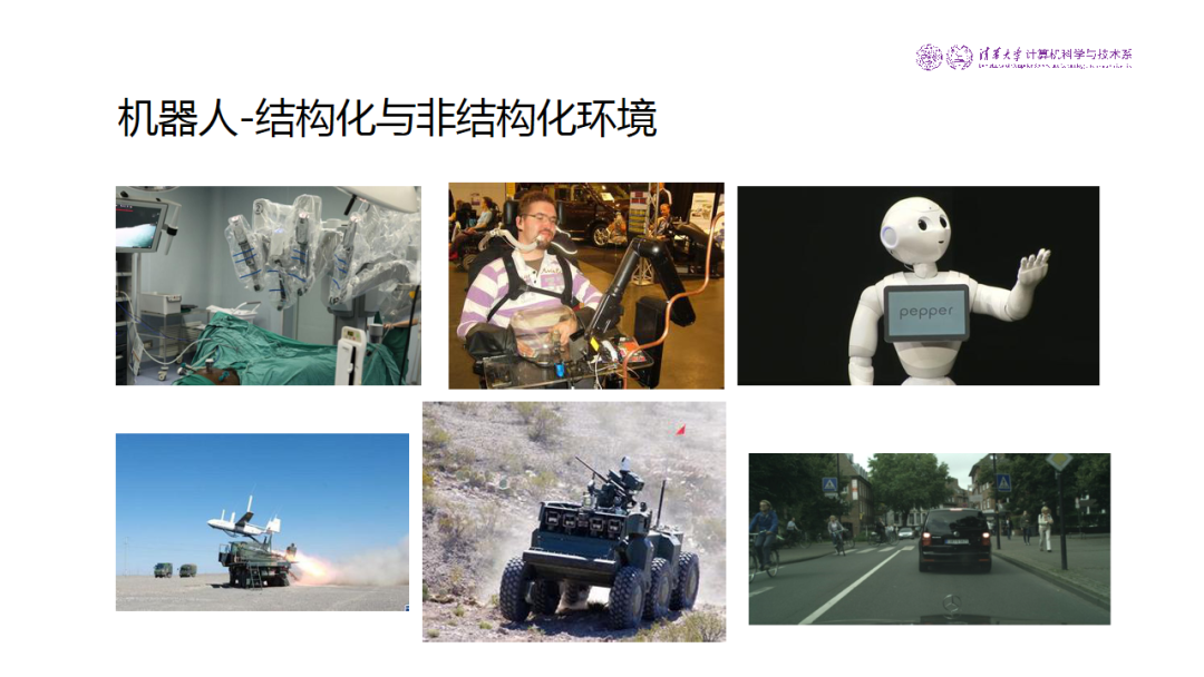 另外,机器人在服务行业、制造业中有大量应用,比如手术机器人。可以看到,这些机器人的应用场景基本上是结构化的环境,即环境基本上是固定不变的,服务机器人目前在这个领域的应用较多。但是像自动驾驶工作在非结构化环境下,应用就困难得多。所以,我们要想让机器人在更多的领域中应用,也必须解决随机应变等鲁棒性等问题。