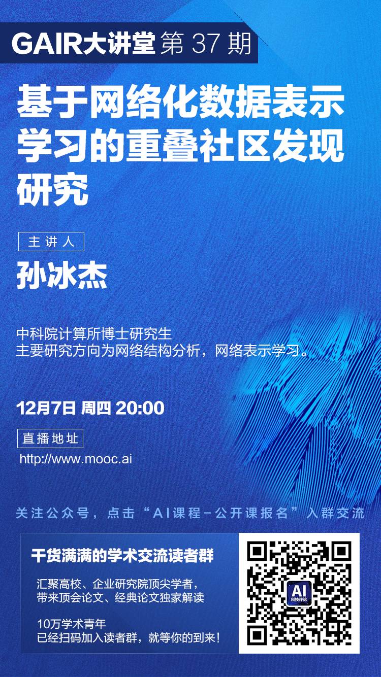 网络是大数据的重要组织形式,然而网络化的数据由于缺少高效可用的节点表示,而难于直接应用。网络化数据表示学习通过将高维稀疏难于应用的数据转化为低维紧凑易于应用的表达而受到广泛关注。网络化数据表示学习的一个重要任务就是重叠社区发现。由于社区结构本身是网络中观粒度上的重要结构特征,向下可以支持微观粒度的连边预测和重要节点识别,向上可以支持宏观粒度的信息传播和网络生成而受到广泛关注。因此,本次公开课孙冰杰博士将针对基于网络化数据表示学习的重叠社区发现介绍他们组最近的相关工作。