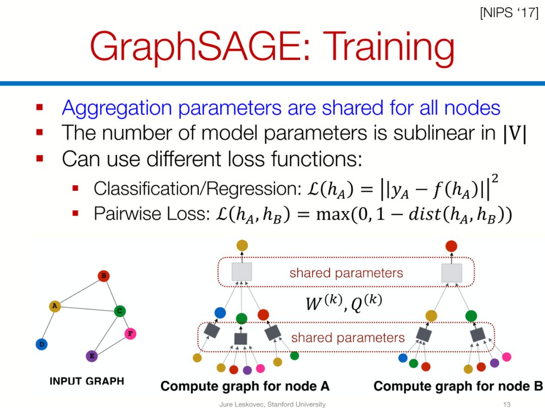GraphSAGE:聚合后的参数可供全部计算节点共享