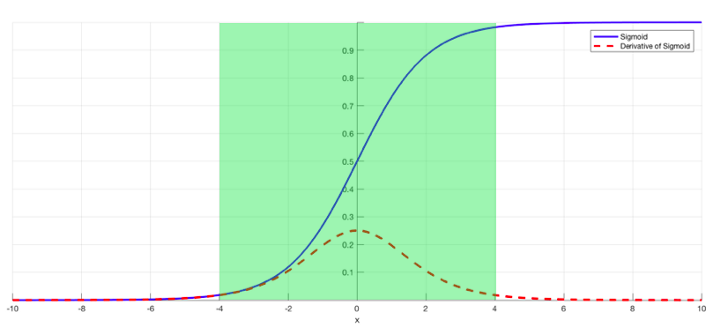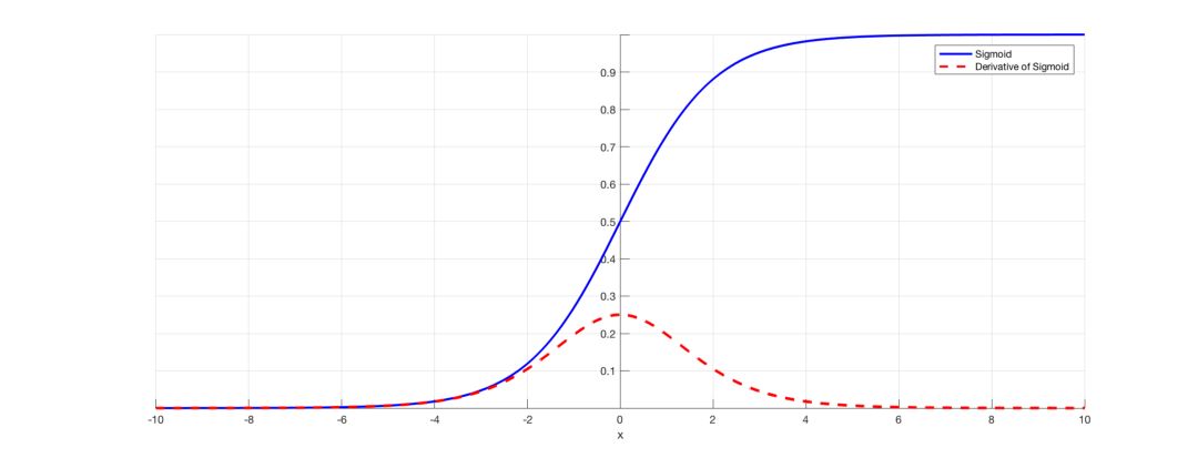 例如,图一是sigmoid函数及其导数。注意当sigmoid函数的输入变大或变小时(当|x|),导数如何接近零。