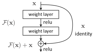 残差网络是另外一个解决方案,因为提供了残差与之前的层直接连接。就像图2中,残差连接直接将block的开头x的值添加到block(F(x)+x)的结尾。