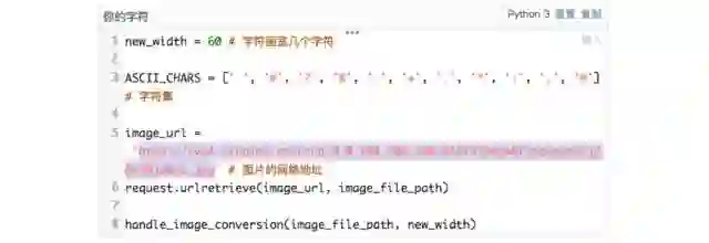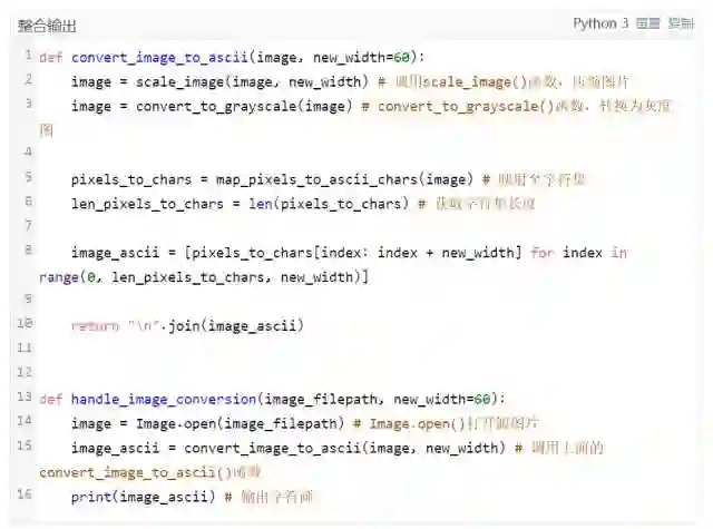 上节的例子仍然保留了默认的字符集和默认图像宽度60,接下来的部分留给读者自由发挥,可以通过修改如下参数获得自己的字符画: