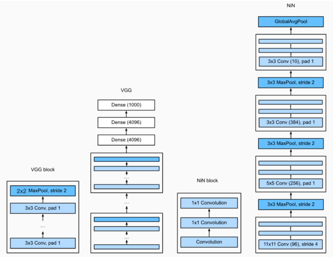 VGG,它的名字来源于论文作者所在的实验室Visual Geometry Group。VGG提出了可以通过重复使用简单的基础块来构建深度模型的思路。VGG16相比AlexNet的一个改进是采用连续的几个3x3的卷积核代替AlexNet中的较大卷积核(11x11,7x7,5x5) 。VGG16包含了16个隐藏层(13个卷积层和3个全连接层)。VGG的结构图如下: