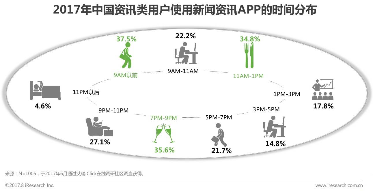 早晨和晚饭时间是用户使用新闻资讯APP的主要时间